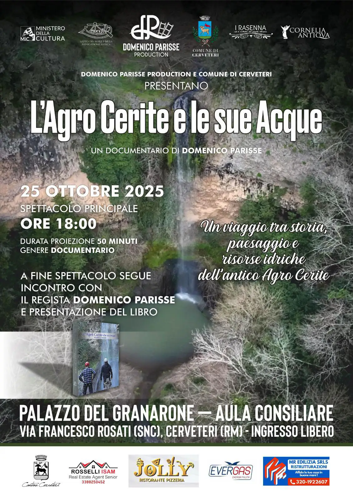 Cerveteri, Il prossimo 25 ottobre 2025, alle ore 18:00, presso il Palazzo del Granarone, Aula Consiliare, in Via Francesco Rosati a Cerveteri, verrà presentato il nuovo documentario dal titolo “L’Agro Cerite e le sue acque”, il cui focus è il popolo dei Ceriti e il legame profondo che questa civiltà aveva con l’acqua, elemento centrale della loro vita quotidiana e della loro organizzazione territoriale.